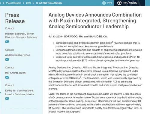 ADI 收購 Maxim,從業內傳聞到正式官宣成功,用了大概不到一天時間。
