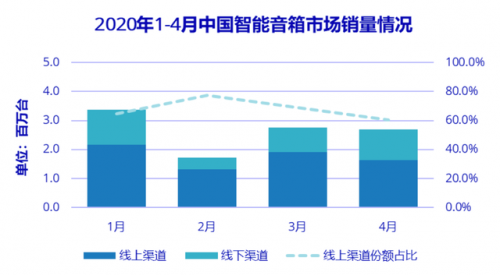 近日,著名數據調研機構 IDC 公布了《IDC 中國智能音箱設備市場月度銷量跟蹤報告》,2020 年 1-4 月國內智能音箱銷量為 1056 萬臺,其中疫情影響整體經濟導致 2 月的銷量受到較大沖擊,但隨后開始慢慢恢復到正常水平。