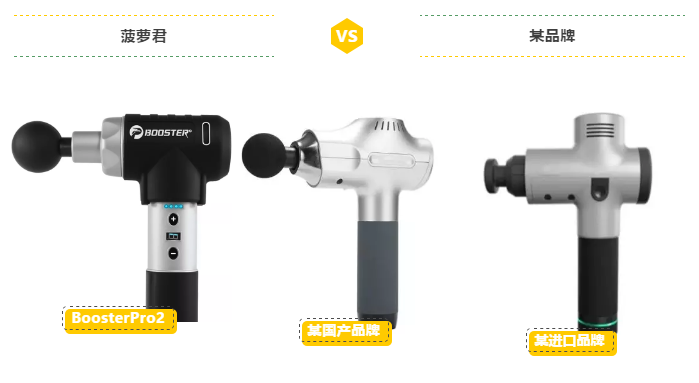 筋膜槍幫助我們更好的進行運動后放松,感受運動帶來的快樂與健康,向著更高品質的生活邁進。這也是菠蘿君的服務理念。所以我們用于對比,將用戶最需要的功能與優勢展現給大家。