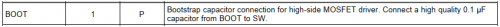 DCDC BUCK 芯片有一個管腳叫 BOOT,有的叫 BST,如下是一個 DCDC 芯片對 BOOT 管腳的解釋,在外部電路設計時,BOOT 和 SW 管腳之間,需要加一個電容,一般是 0.1uF,連接到 DCDC 高端 MOS 管的驅動端,這個電容就叫作自舉電容。