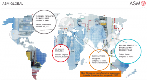 ASM 成立至今已有 52 年,研發(fā)中心、產(chǎn)品線和工廠目前遍布全球 7 個國家,總部在荷蘭。公司作為前道設備供應商,負責前段工藝,主要產(chǎn)品包含 ALD、epi、PECVD、爐管等。